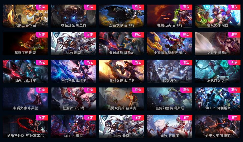含炫彩711皮丨终极皮3神话10限定89传说45丨SKT全套丨瞎子龙虾丨马年瑞文丨羊年金克丝丨蛇年安妮丨狗年狗头丨狗年金克丝丨赵云子龙丨卡特三国丨恶意撤单拉黑!