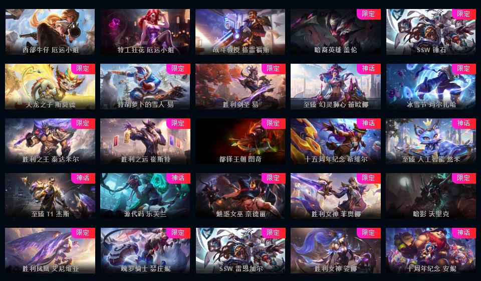 655皮▲龙瞎▲至臻凯隐▲至臻塞娜▲至臻亚索▲至臻蕾欧娜▲至臻拉克丝▲至臻瑞文▲至臻艾瑞莉娅▲至臻锤石▲至臻盖伦▲海克斯鳄鱼皇子希维尔▲创星御星崭星