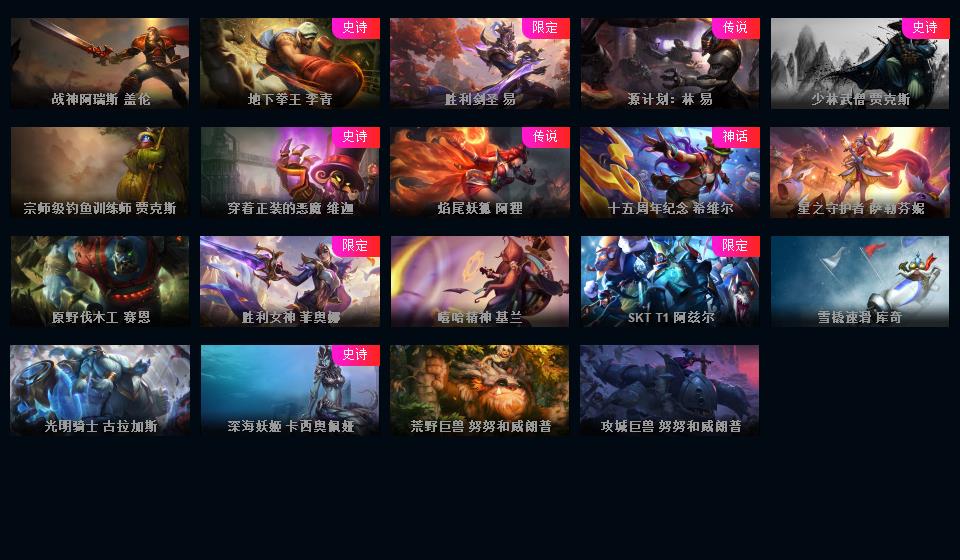 🌍满英雄1086皮肤全新 龙虾 海克斯科技拉莫斯海克斯斯维因至臻薇恩至臻提莫至臻EZ海克斯人马至臻