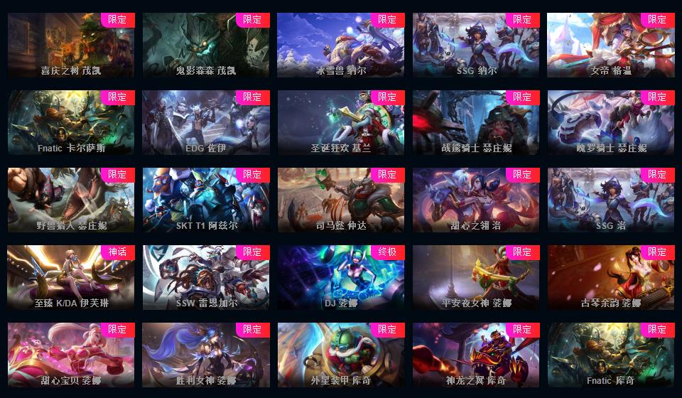 均衡教派-1784皮-48神话至臻-200限定-97传说-16臻彩-龙虾一代至臻卡莎-阿卡丽-寡妇-阿狸-至臻亚索等-超多年限-源计划套-情人节套-星守套-愚人