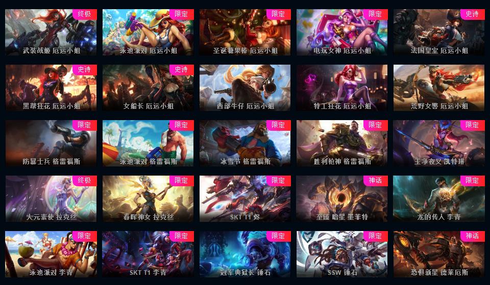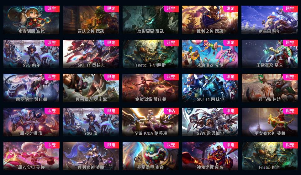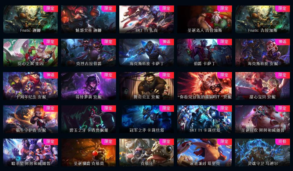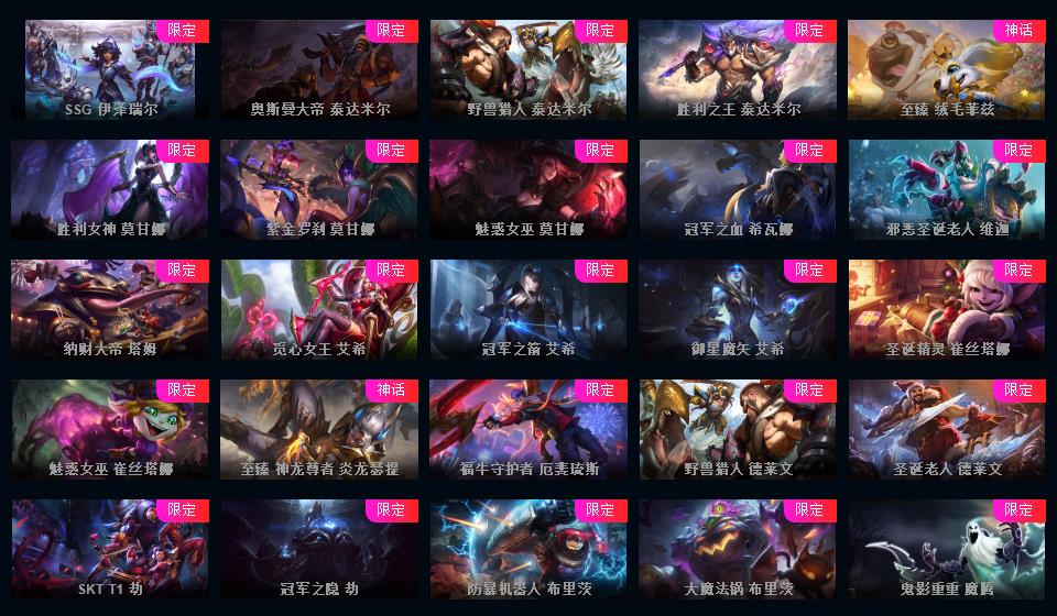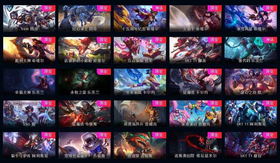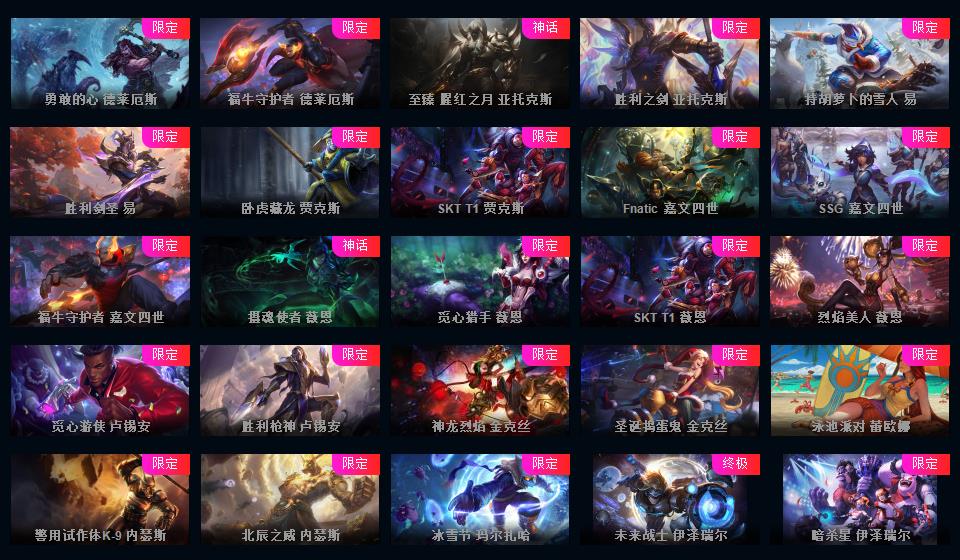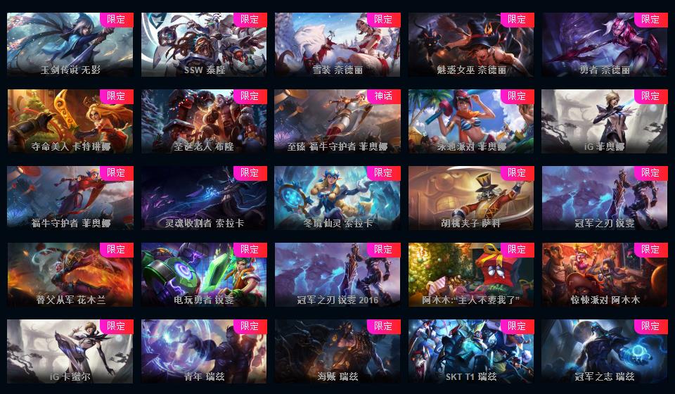 1532p-黑色玫瑰-40神话-189限定-91传说-龙瞎-海克斯薇恩-恐惧诺手-泳池派对全套-情人节套-冰雪节套-源计划套-冠军皮肤套-超多年限具体游戏见吧