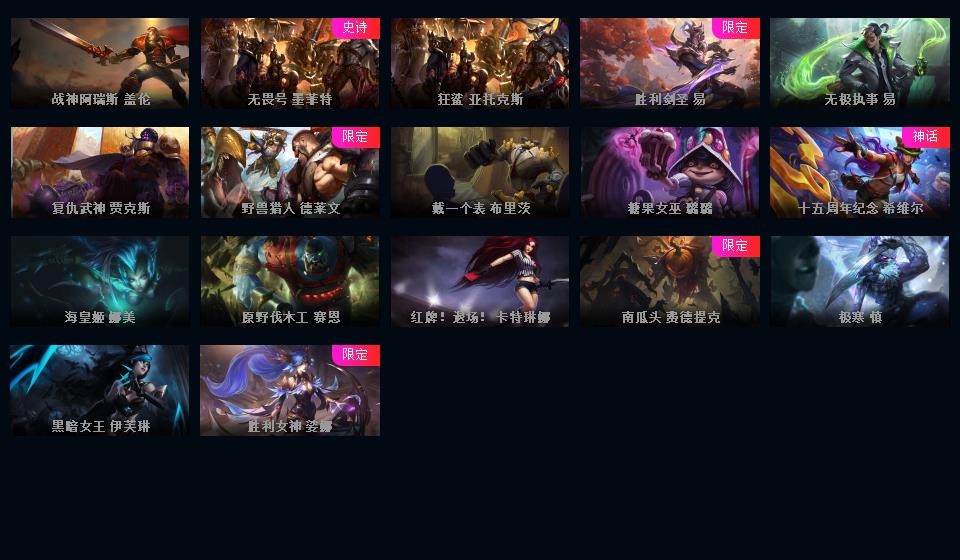 580皮▲全英雄+海克斯斯维因舞会公主奥斯曼大帝泰达米尔电玩者锐雯阿狸星守EZ周年女刀