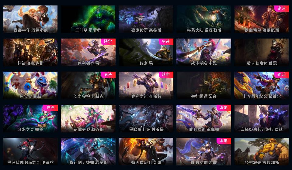 810皮/满英雄/黑色玫瑰可排位/3终极/110限定/60传说/黑夜使者亚索/泳池瞎子/冰雪节发条/超多年限/源计划套/冰雪节套/情人节套/星之守护套/具体游戏