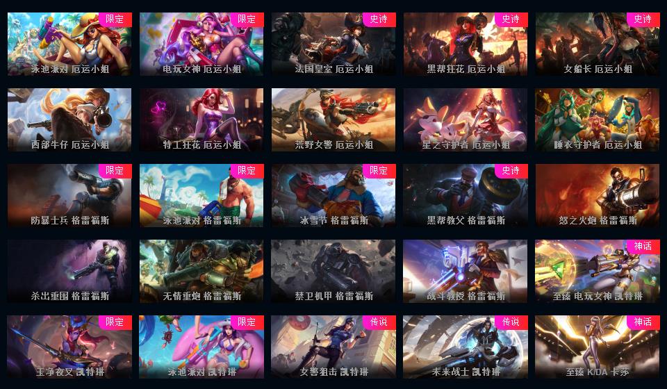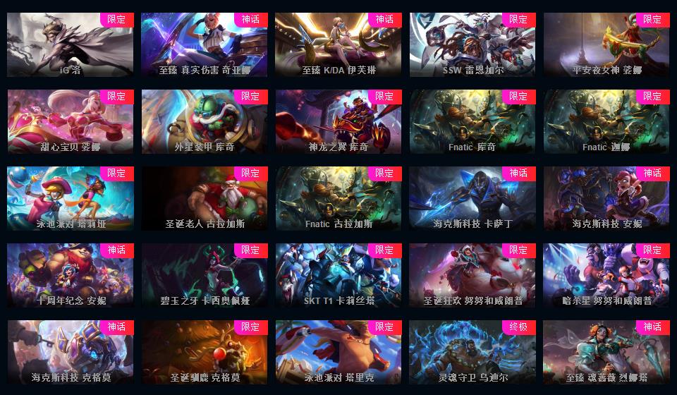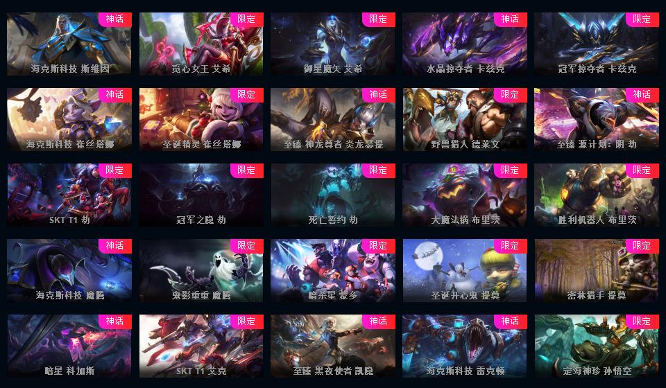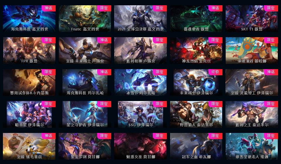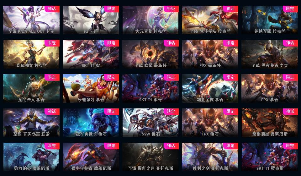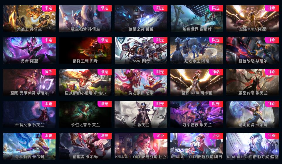 1000皮/满英雄/白银段可排位/龙瞎+龙琴+龙刀+龙猴/摄魂薇恩/至臻琪亚娜/至臻瑞文/3终极皮/泳池派对全套/100+限定/60传说/每个英雄都有一款以上好