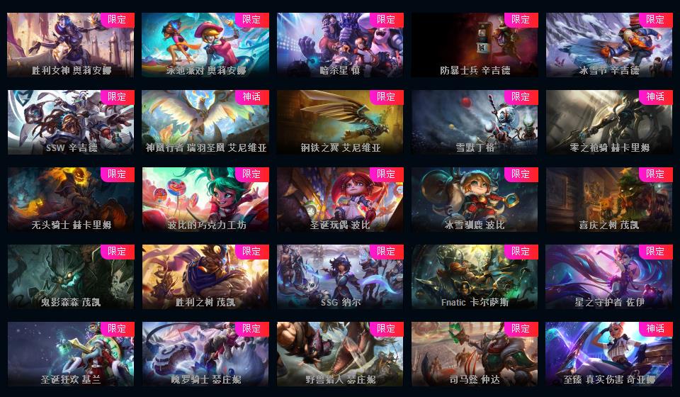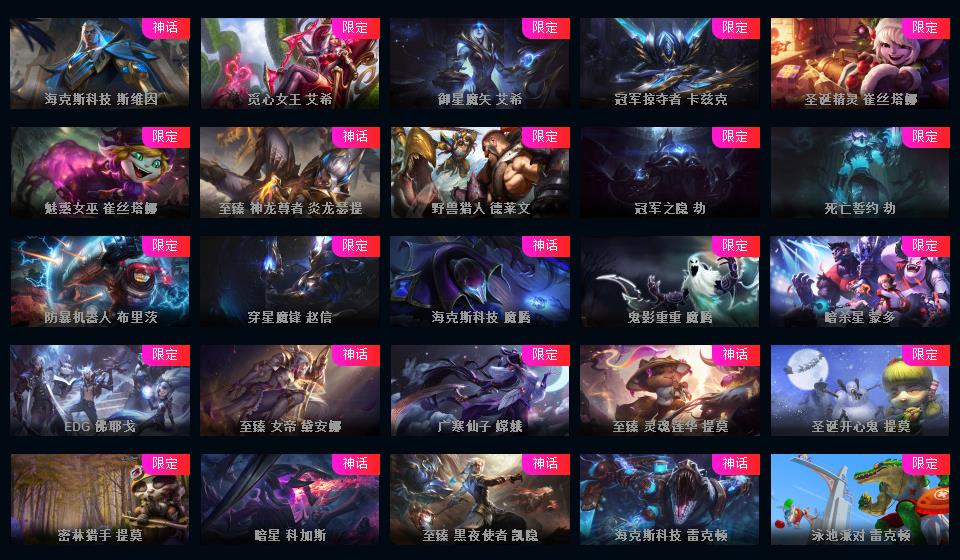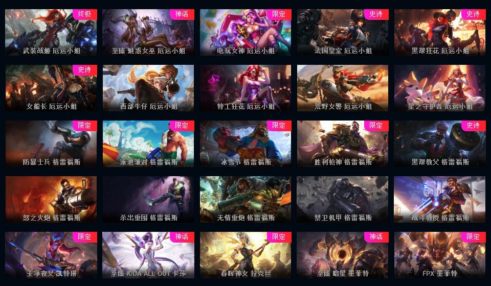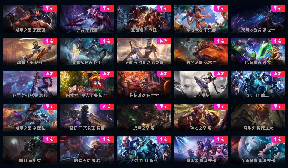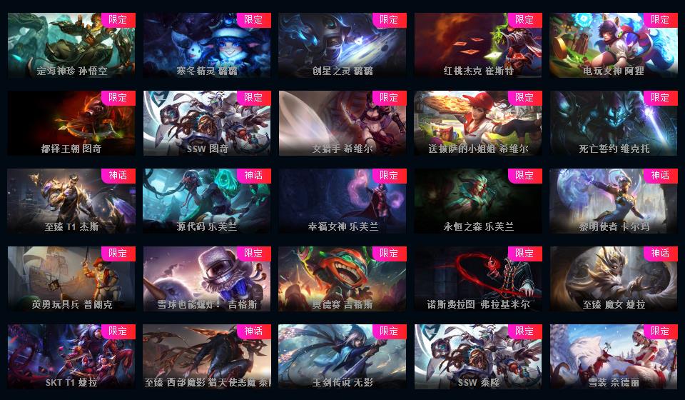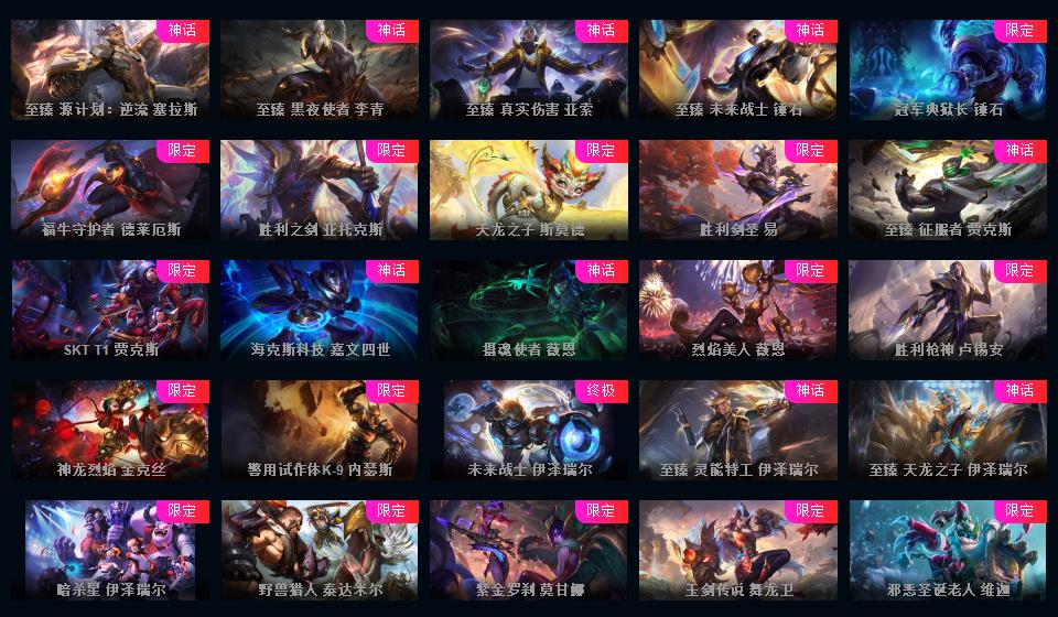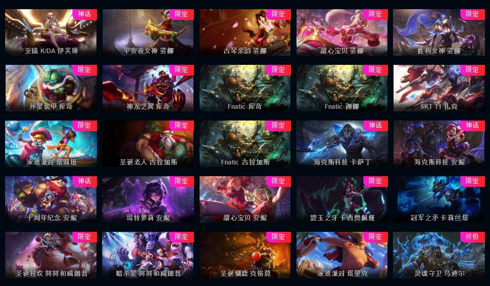 580皮▲全英雄+海克斯斯维因舞会公主奥斯曼大帝泰达米尔电玩者锐雯阿狸星守EZ周年女刀