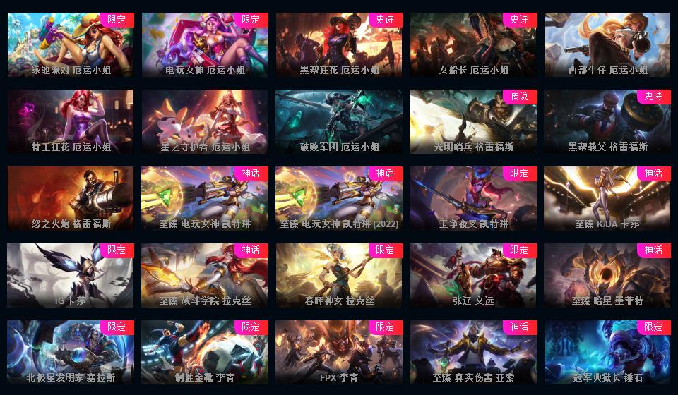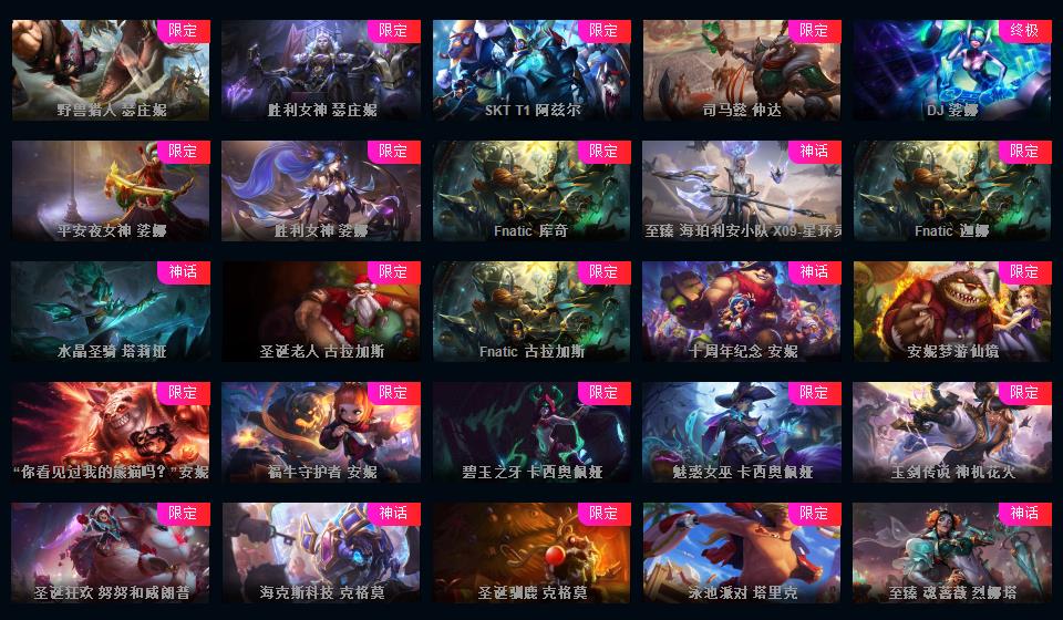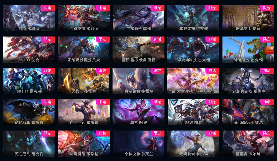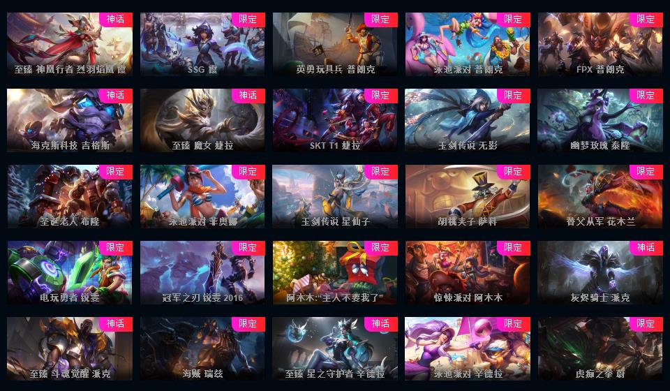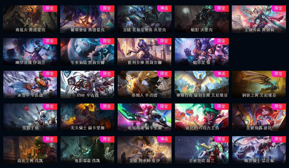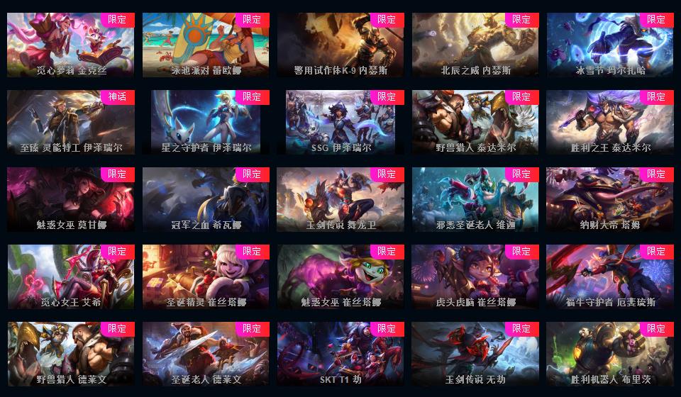 可排位-1469皮-503炫彩-201限定-86传说-34神话至臻-龙虾-至臻卡莎-阿卡丽-寡妇-阿狸-女警-薇恩-ez-万豪-卢锡安等-超多年限-情人节