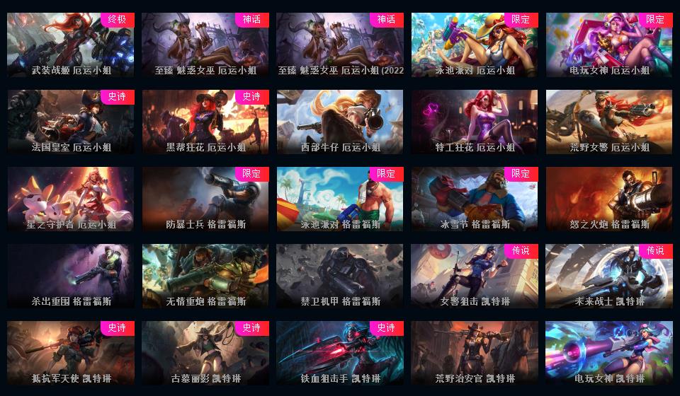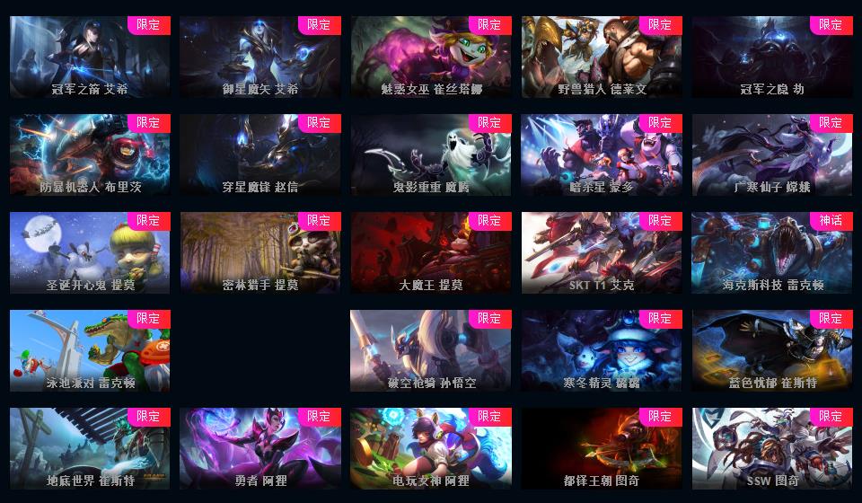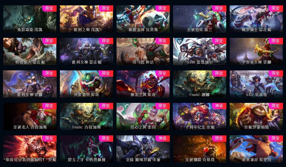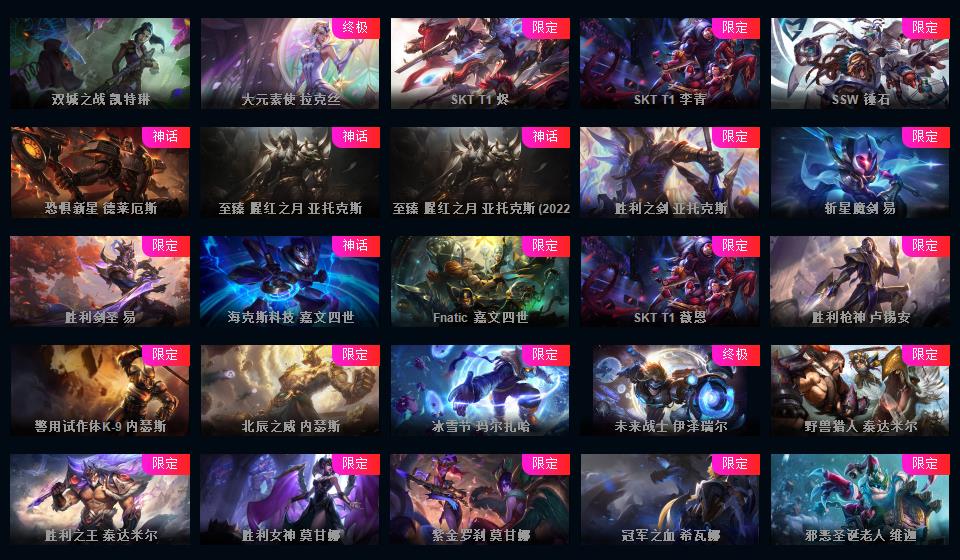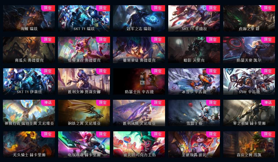 755原皮 409炫彩 42神话 云顶3神话艾希璐璐神话棋盘怪兽来袭 皮肤斗魂觉醒沙弥啦 至臻 神王 电玩 情人节 源计划 玉剑 冰雪节 万圣节 冠军限定很多