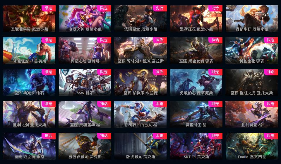 真实1634皮/可排位/23神话/13至臻/166限定/76传说/至臻亚索-劫-塞纳-万豪-ez-剑姬-刀妹等/海克斯科技薇恩/龙/超多年限/冠军皮肤超多精