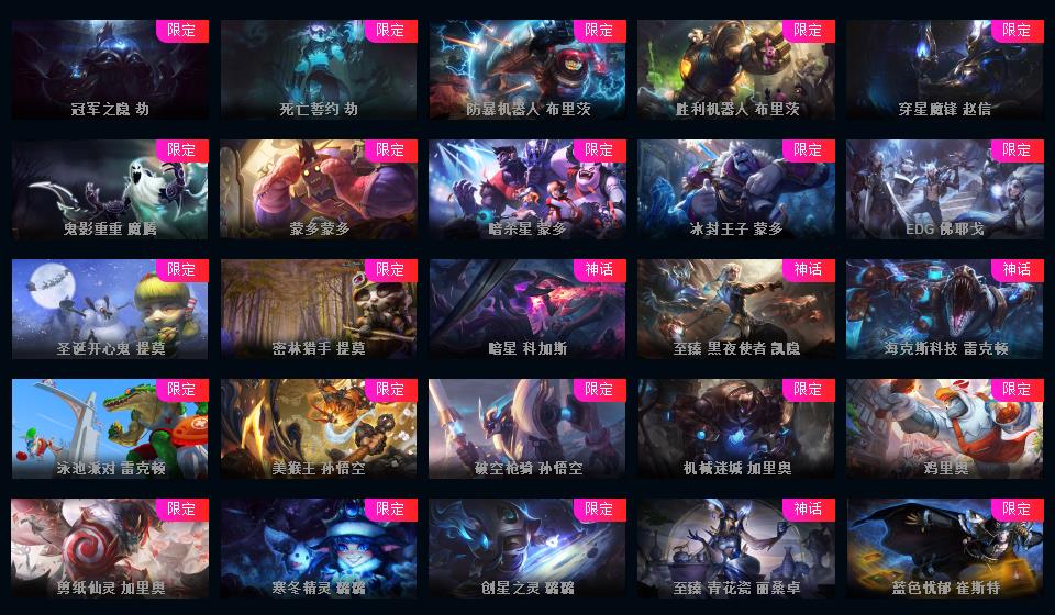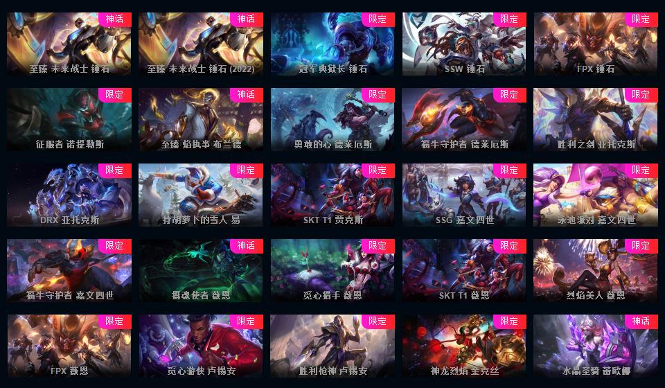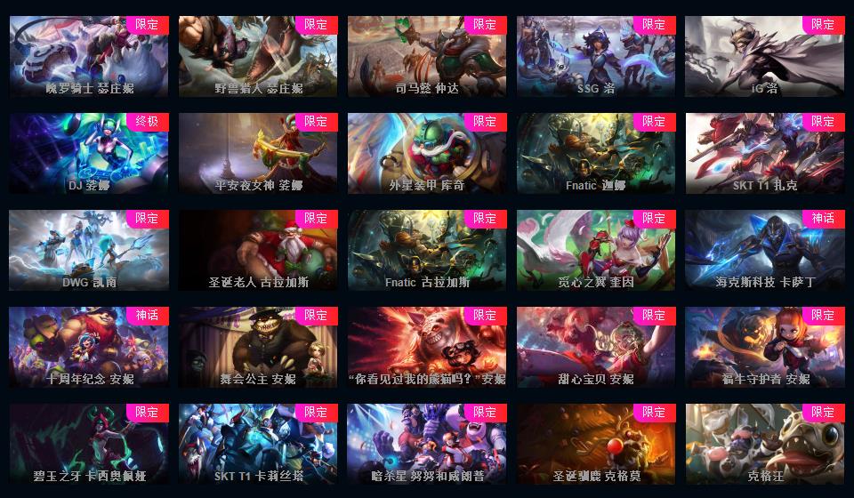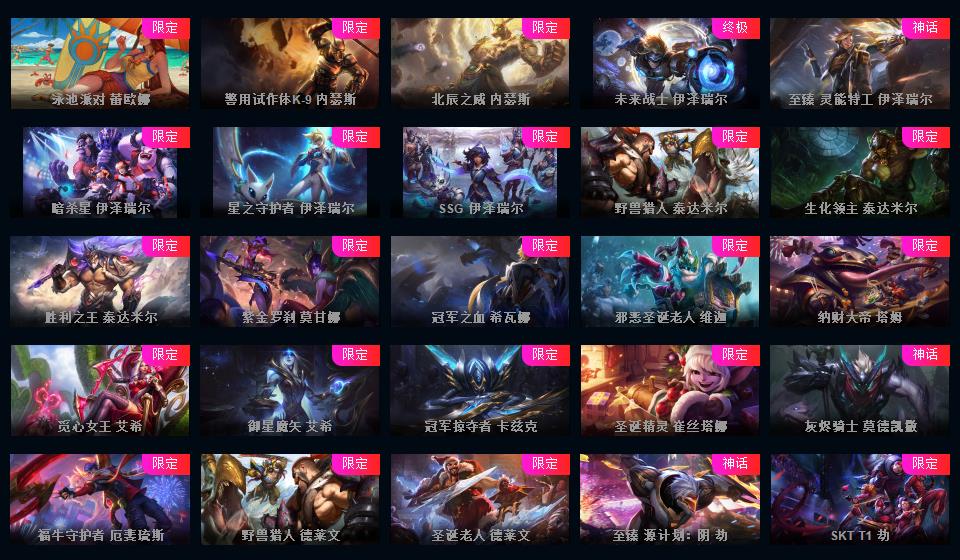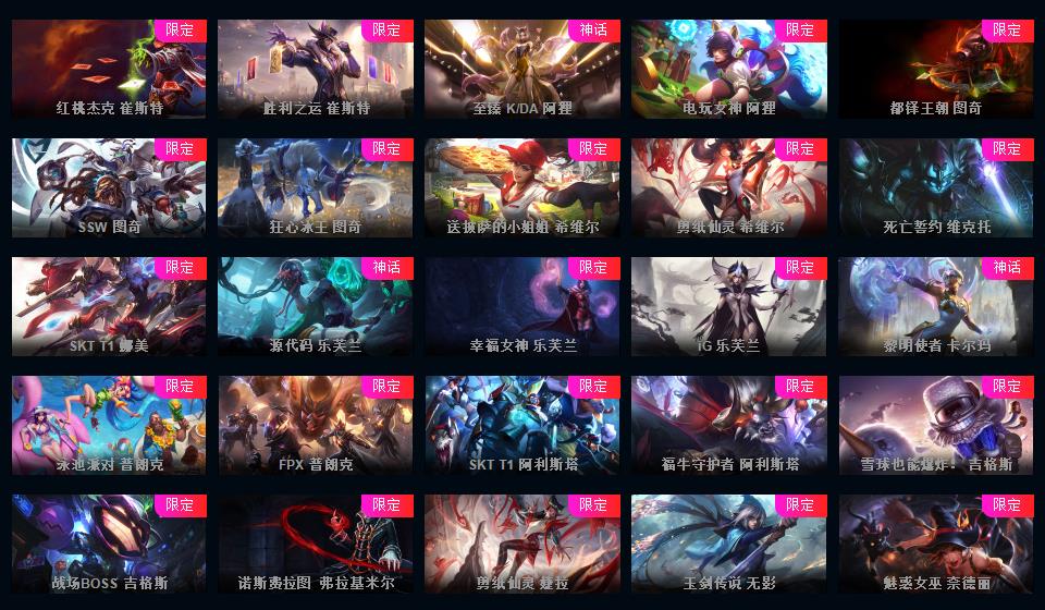 700皮+15神话至臻薇恩亚索卢锡安卡莎摄魂薇恩IG签名全套FPX签名全套KDA全套签名皮肤+新皮超多