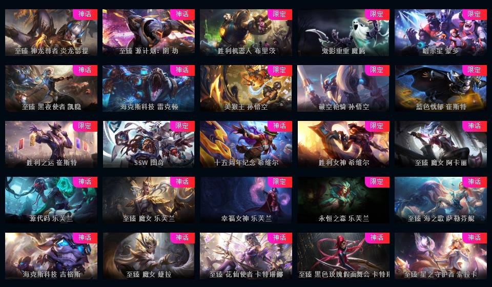 1011皮肤+4终极+21神话+25个三星小小英雄+福星新皮免费+摄魂VN至臻伊芙琳阿狸锤石塞娜瑞文