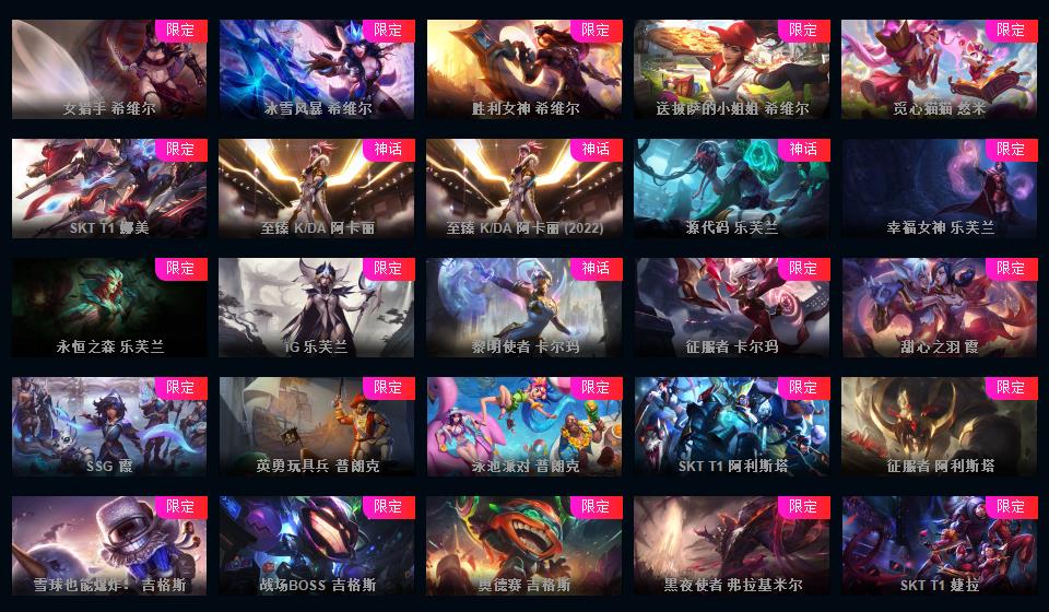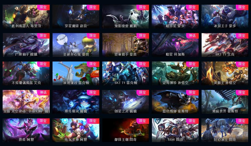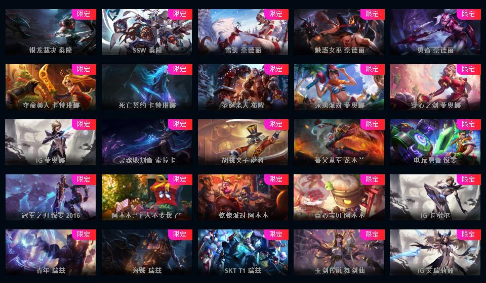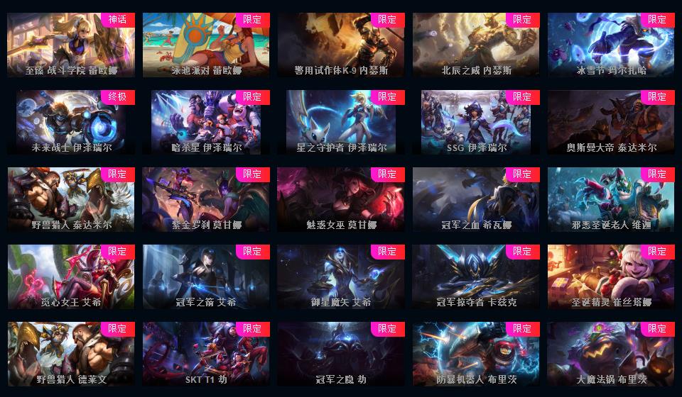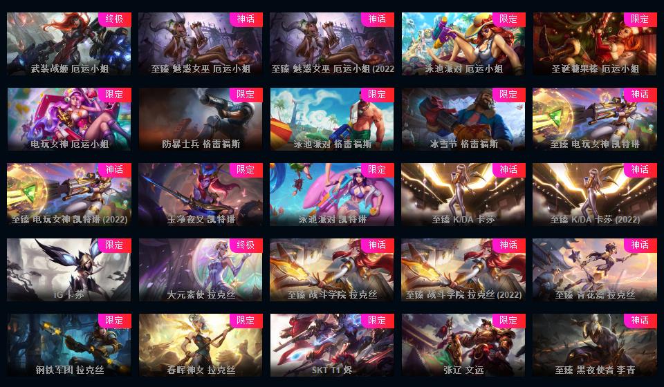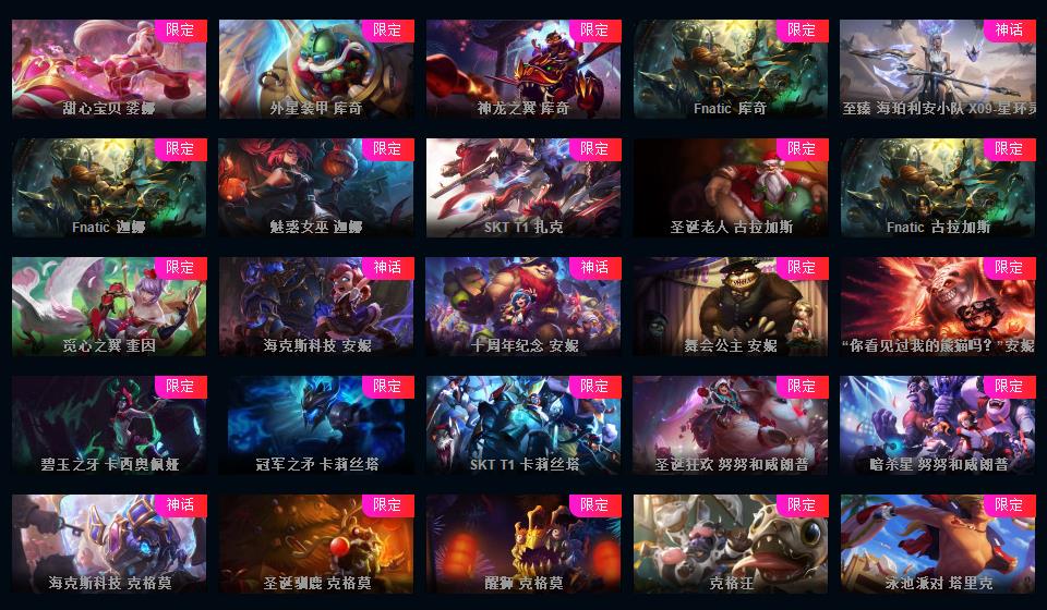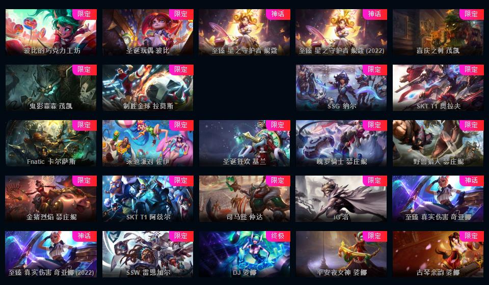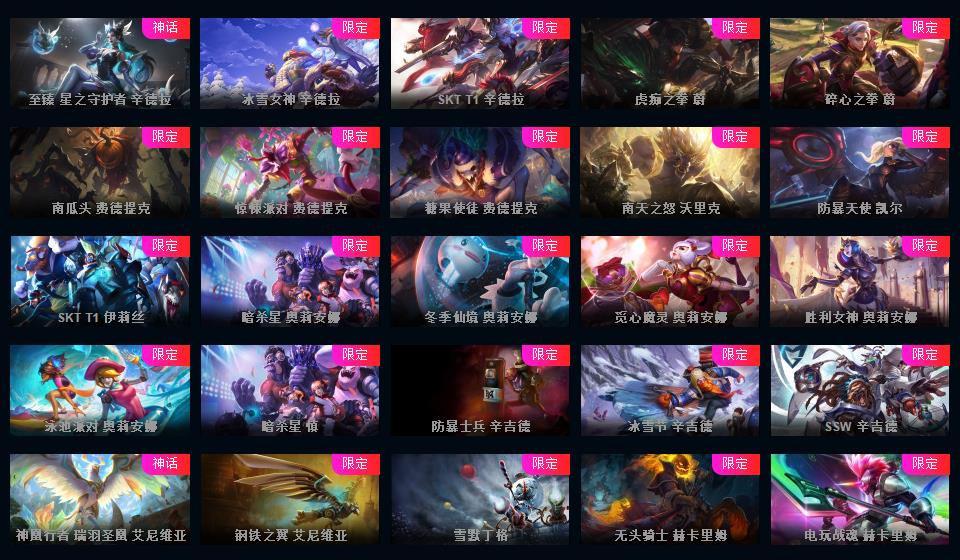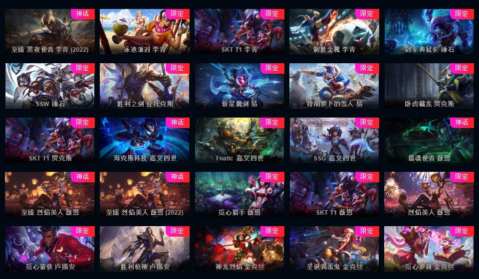 972原皮 532炫彩 12神话 18臻彩 云顶5神话卧龙之境剑魔李青胖胖龙菜大师 龙虾龙刀龙猴 新年限定 情人节 万圣节 冰雪节 电玩系列 源计划 泳池 电玩