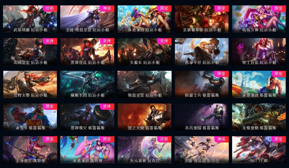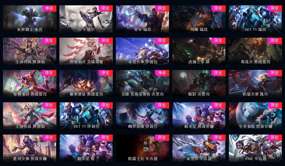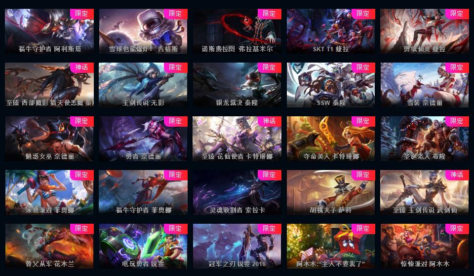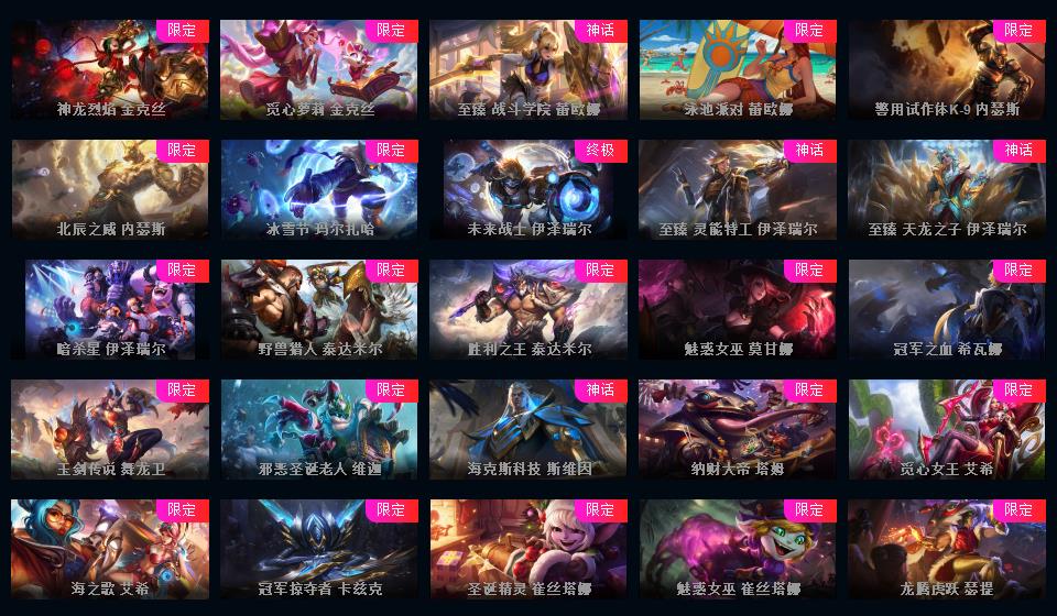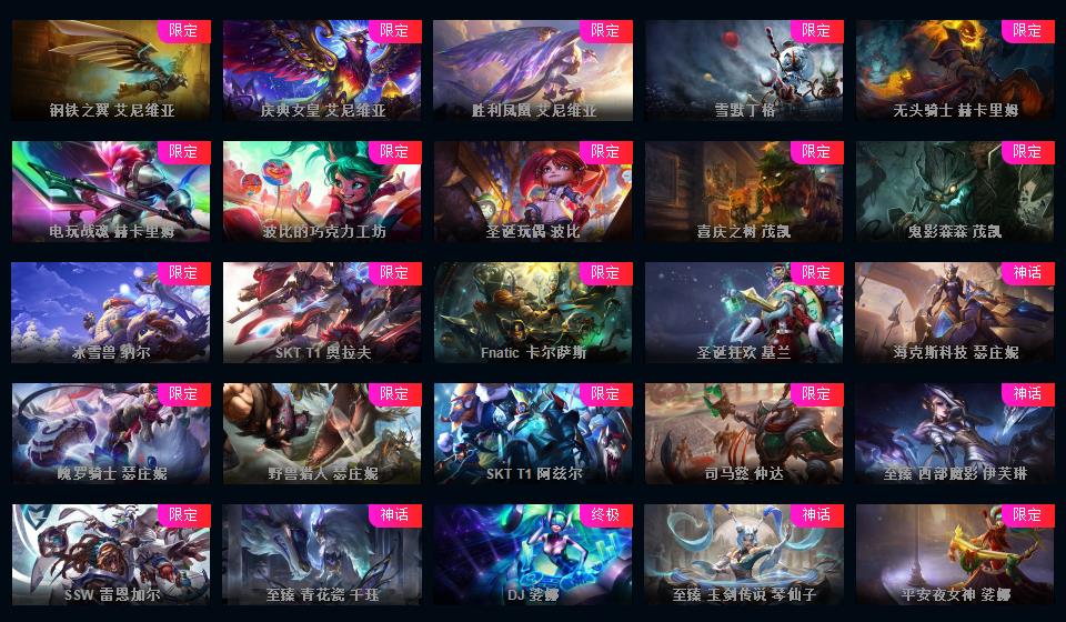 810皮/满英雄/黑色玫瑰可排位/3终极/110限定/60传说/黑夜使者亚索/泳池瞎子/冰雪节发条/超多年限/源计划套/冰雪节套/情人节套/星之守护套/具体游戏