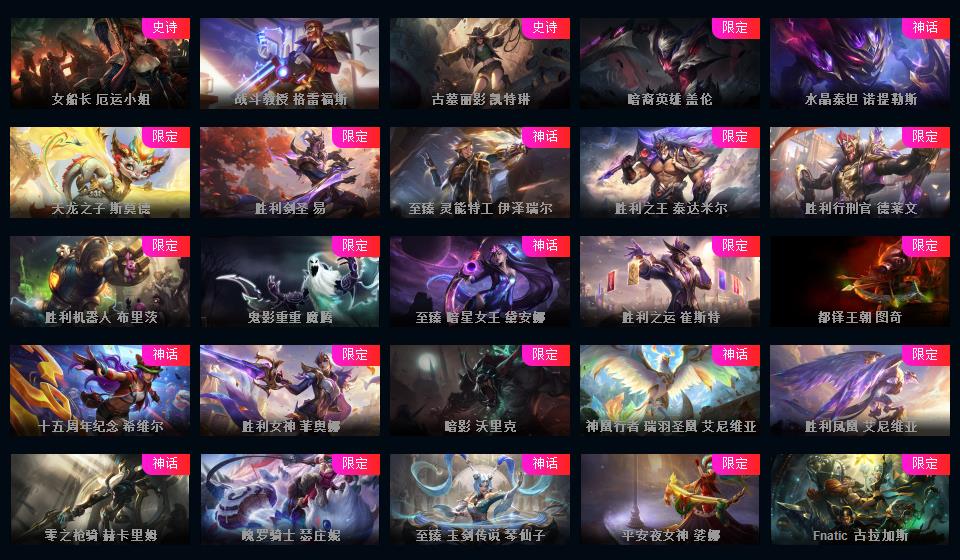 1050皮肤✘蓝龙虾✘冰原女警✘哥特萝莉✘龙刀龙琴羊丝冰雪丝✘周年女枪诺手安妮✘猴年女警莫甘娜✘嫦娥花