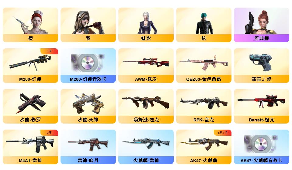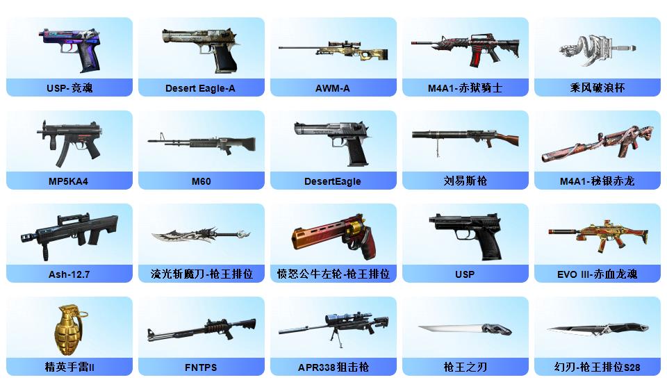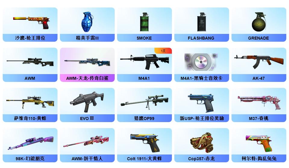北部双幻神音效炮/荣耀4件套/传奇EVEN/竞技荣光STAR全套8副/白鲨S14冠军/赛事皮若干/夜魔AG战队耀金星空电竞幻灵雷暴套/职业选手三防小人枪