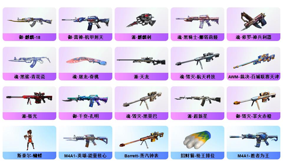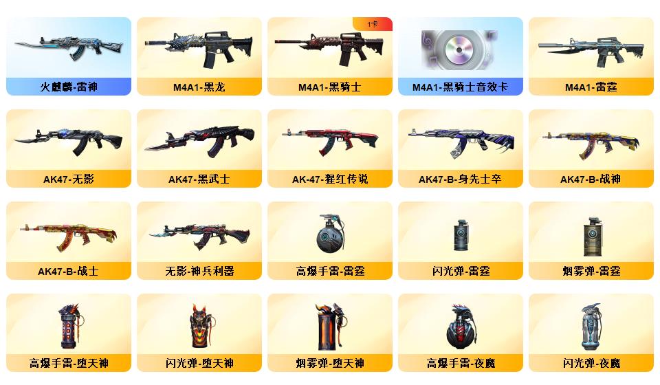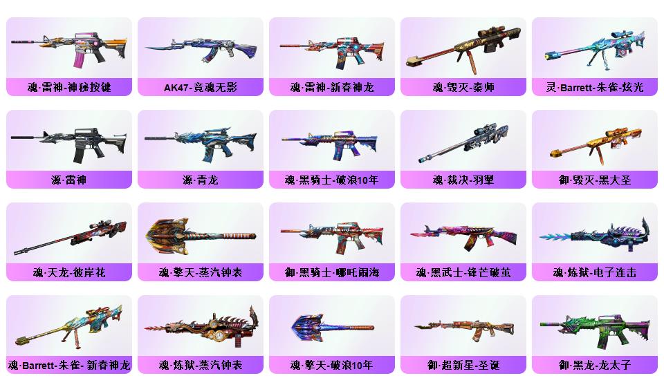 140V雷暴套/雷霆套/六烈龙蝴蝶斯太尔/炼狱小钢/白虎之魄/毁灭音效+荣耀之怒+AG冠军/雷神音效+荣耀星空/AG火麒麟音效/黑骑音效/竞魂音效/生化无需换弹