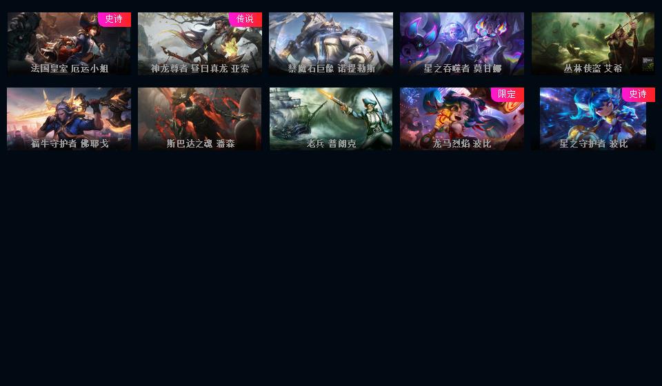 真实1296皮/可排位/15神话/201限定/73传说/龙虾+黑龙-至臻寡妇-小鱼-盖伦-万豪-剑魔-剑姬-石头人等/海克斯科技薇恩/超多年限/冠军皮肤超多