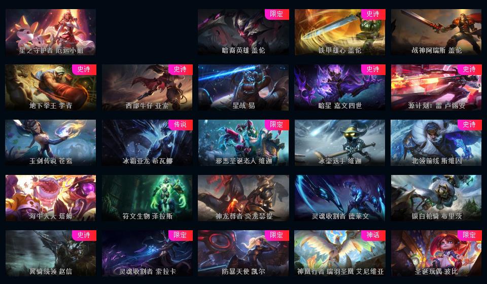 1250皮肤◆龙瞎至臻卡莎◆龙猴◆龙刀◆摄魂VN◆斩星魔剑◆战熊骑士源计划周年限定玉剑传说星之守护者
