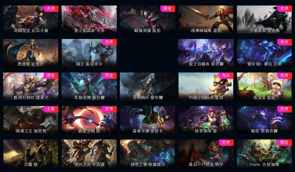 750皮肤★至臻狙击手电玩卡莎★海克斯诺克恐惧新星★创星御星★猪年VN★勇敢的心★限定泳池星之守护者