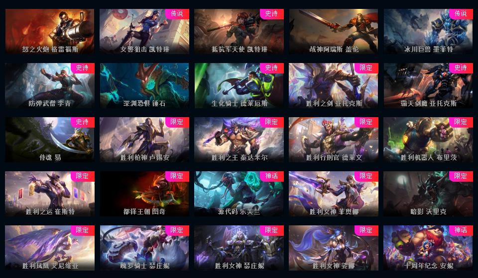 开心玩1满英雄1086皮肤全新 龙虾 海克斯科技拉莫斯海克斯斯维因至臻薇恩至臻提莫至臻EZ海克斯人马至臻