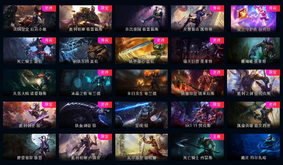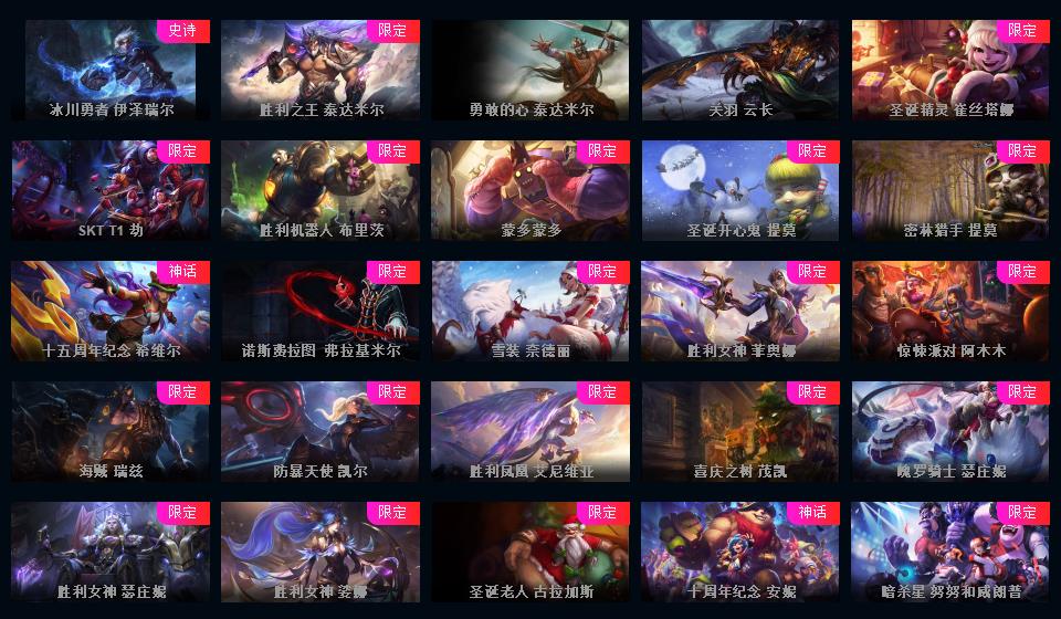 1000皮肤♥龙瞎♥海克斯摄魂VN人马♥送披萨的小姐姐全炫彩♥周年限定♥玉剑传说♥泳池电玩战队