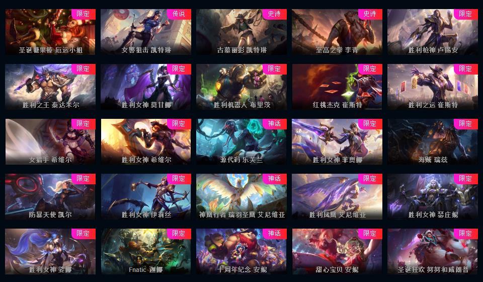 965原皮+450炫彩+28神话+15臻彩 霸天白剑魔 鼠年年套 云顶神话青花瓷小小拉克丝 新年限定 情人节 万圣节 冰雪节 电玩系列 源计划 泳池 电玩