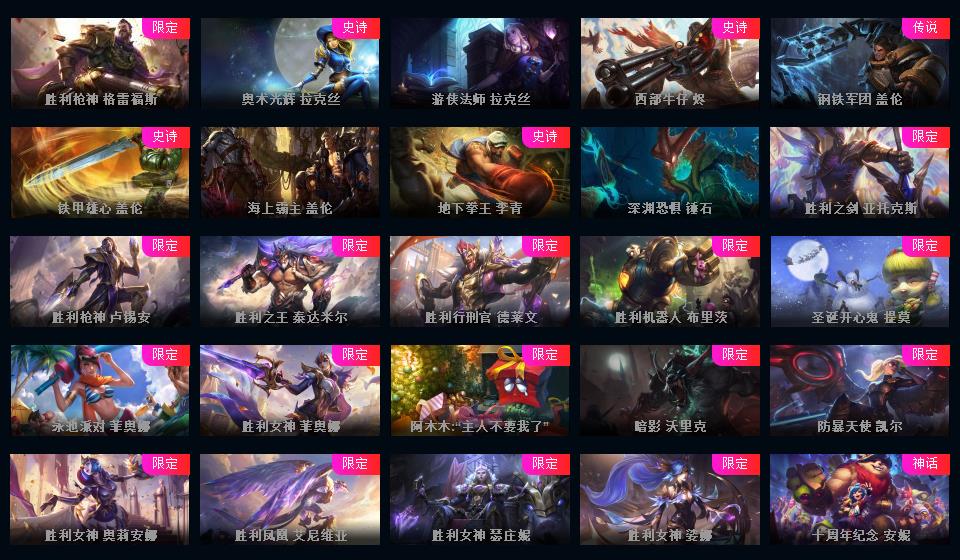👼 皮肤帝实时更新皮肤 1008皮肤 龙虾 征服者 海克丝系列 主播级土豪号 梦游仙境 花木兰