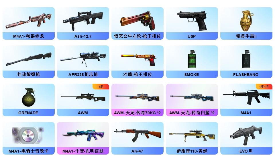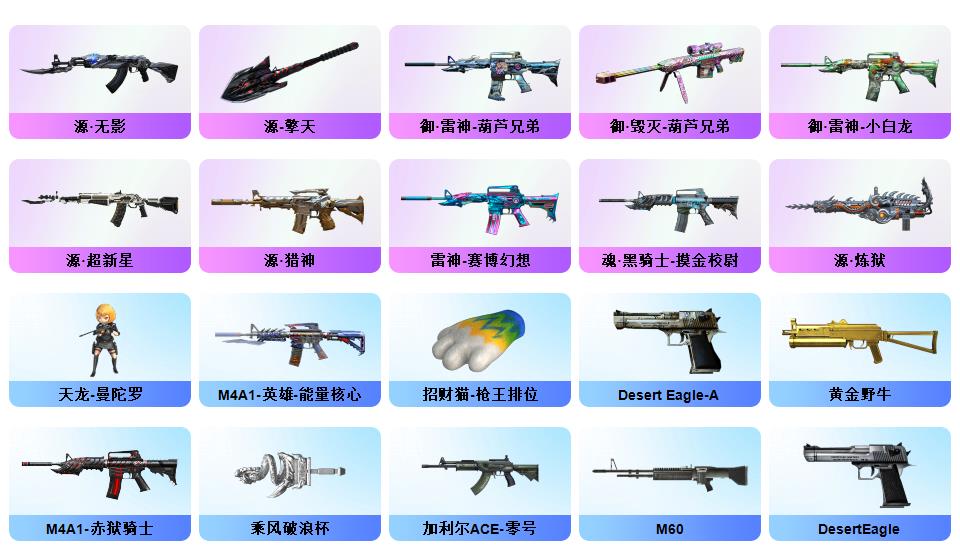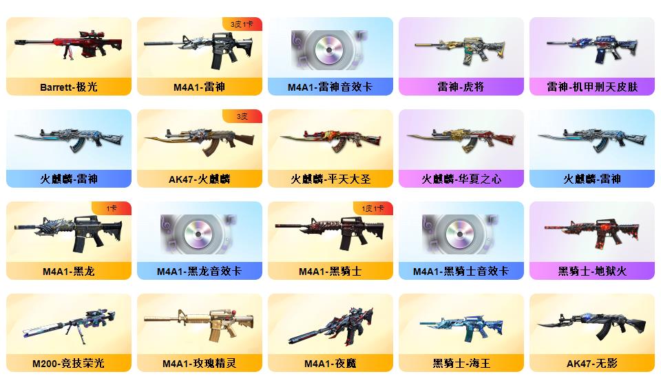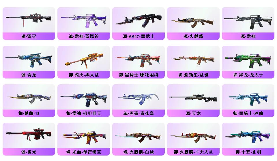 最新神威莲花幻神4皮音效卡裁决3皮音效卡白虎4皮音效卡QBZ双皮音效卡G36双皮音效卡星神天袭玄武朱雀银翼王者雷暴COP冠特六烈盘蝴蝶小刚双炽芒蝶刃12音效卡