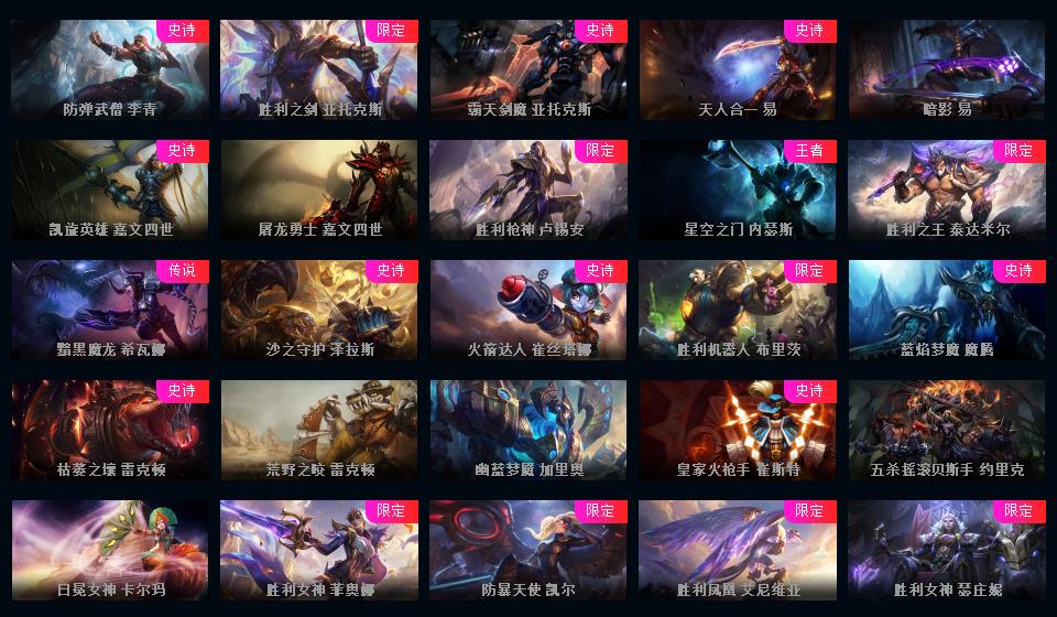 真实2031皮/89神话/龙瞎+蓝炫/哥特萝莉/龙猴+龙刀+龙琴/情人节全套/原计划全套/IG冠军限定/FPX冠军限定/200多限定/每个英雄都有全有/看图