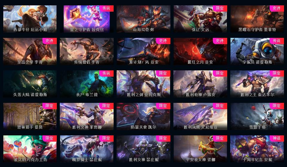 1453P-皮城警备可排位-31神话-183限定-90传说-全史诗-龙虾-至臻卡莎-亚索-永恩-ez-瑞文-万豪-女枪-希维尔等等-超多年限-情人节套-星守套等