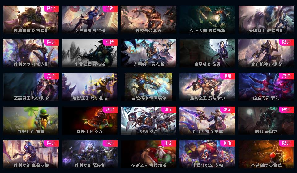 950皮肤◆元老议会◆莲花之令◆黑龙瞎◆摄魂VN◆斩星魔剑◆战熊骑士◆养蜂人艾欧尼亚LOL源计划星之