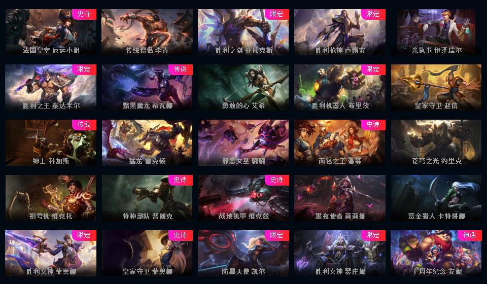 800皮肤年限VN创星璐璐御星寒冰冠军皮肤奥斯曼大帝勇敢的心花木兰羊年金克周年限定冠军皮肤战队泳池派