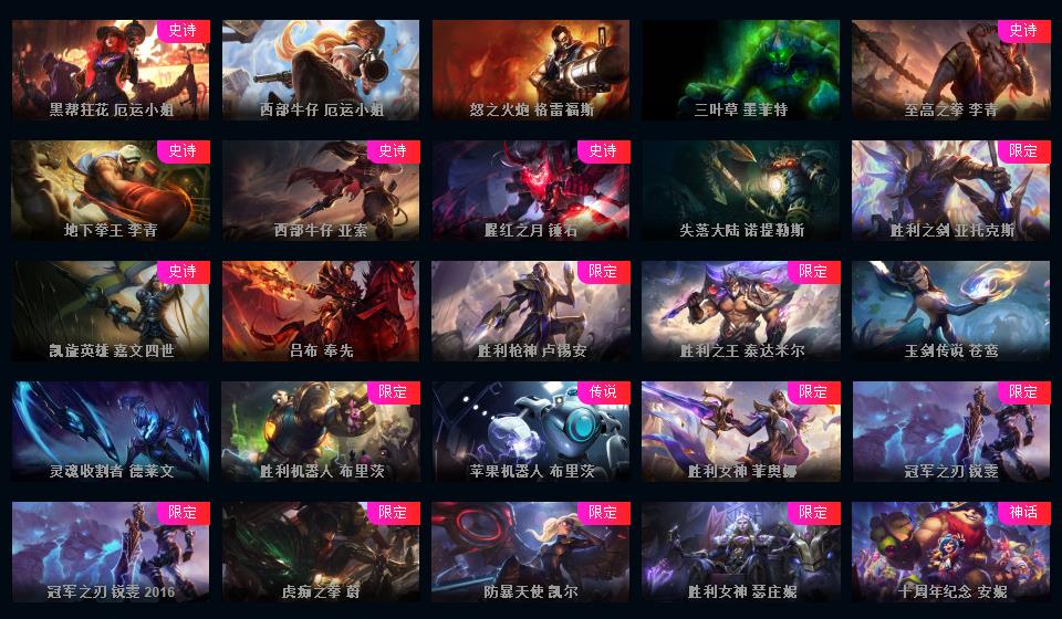 700皮肤龙瞎龙猴海克斯摄魂VN诺克恐惧新星勇敢的心奥斯曼大帝泳池派对源计划星之守护者周年限定战队皮