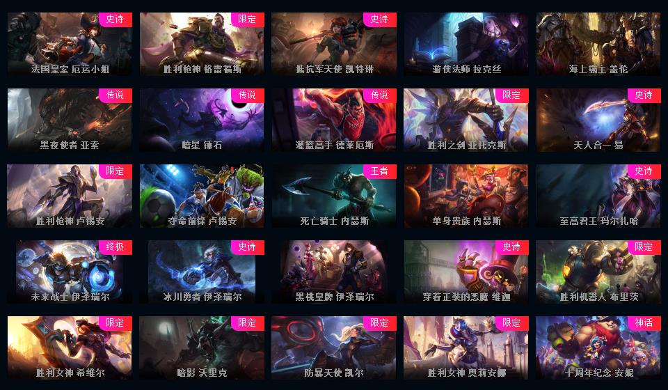 1600皮-1070原皮-530炫彩-207限定-94传说-39神话至臻-龙虾-至臻卡莎-阿卡丽-寡妇-阿狸-女警-薇恩-ez-万豪-卢锡安等-超多年限-情人节
