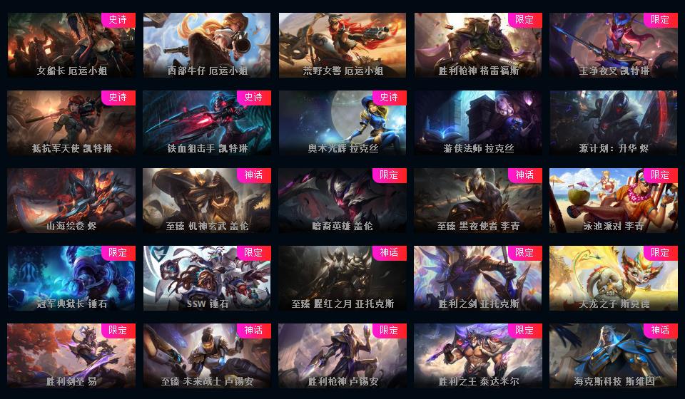 1529p-水晶之痕-48神话-204限定-83传说-龙瞎-海克斯薇恩-恐惧诺手-泳池派对全套-情人节套-冰雪节套-源计划套-冠军皮肤套-超多年限具体游戏见吧