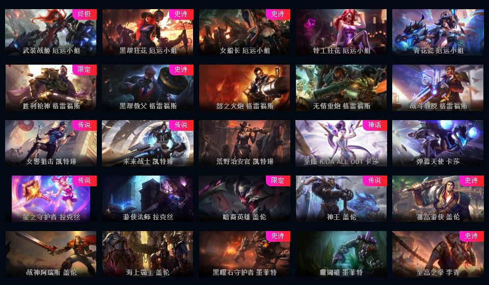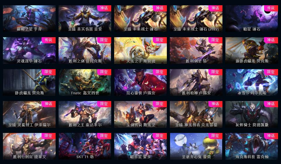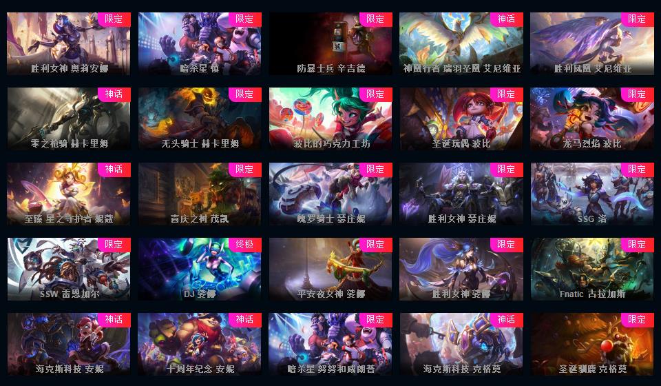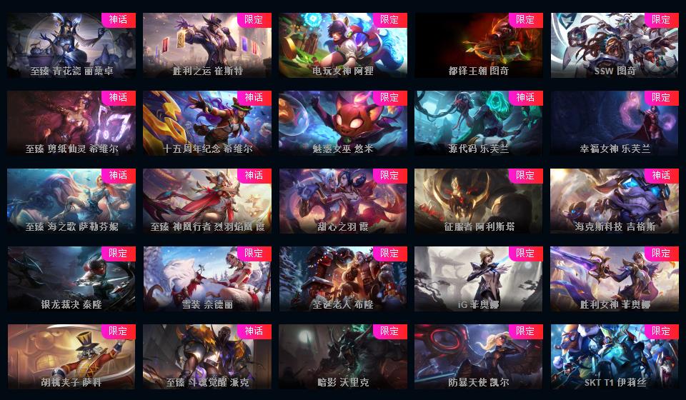 👼 皮肤帝实时更新皮肤 1008皮肤 龙虾 征服者 海克丝系列 主播级土豪号 梦游仙境 花木兰