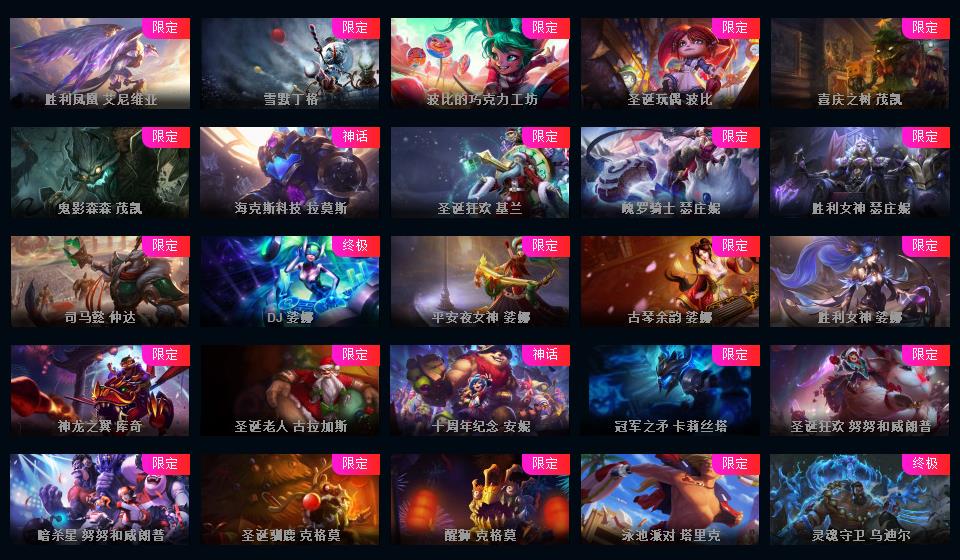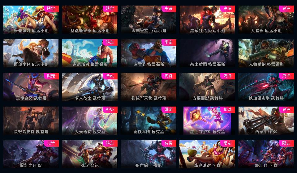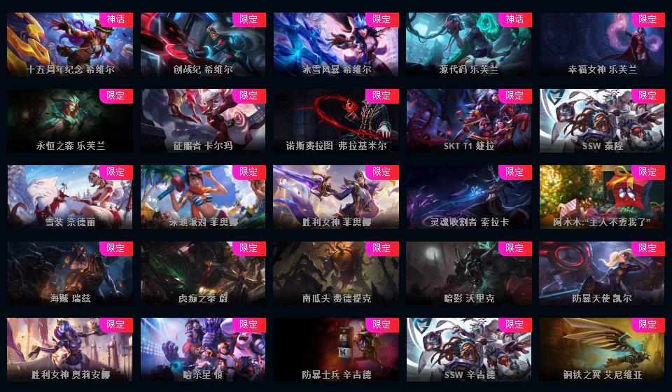 真实1687皮/黄金可排位/66神话/51至臻/151限定/94传说/至臻卡沙-阿卡丽-锤石-万豪-ez-永恩-妮蔻等/海克斯科技薇恩/龙年限定4个/超多年限超