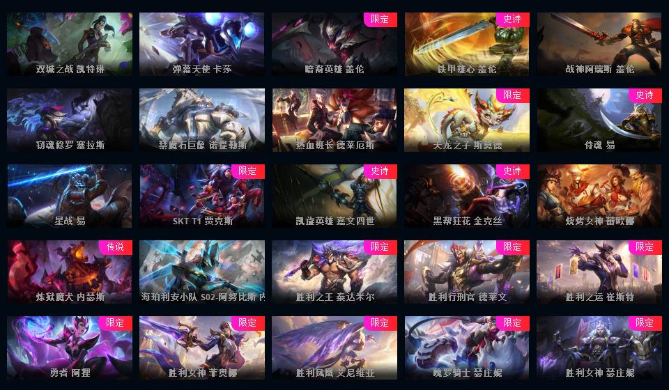 1250皮肤◆龙瞎至臻卡莎◆龙猴◆龙刀◆摄魂VN◆斩星魔剑◆战熊骑士源计划周年限定玉剑传说星之守护者
