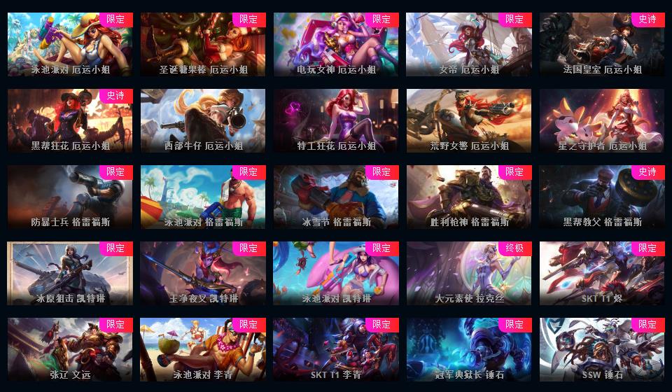 608皮▲全英雄+冰原阻击海克斯鳄鱼创战纪花木兰嫦娥鸡年蔚周年女枪诺手EZ爱心头羊年金克丝情人节发条艾希奎因琴女