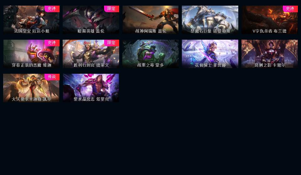 972原皮 532炫彩 12神话 18臻彩 云顶5神话卧龙之境剑魔李青胖胖龙菜大师 龙虾龙刀龙猴 新年限定 情人节 万圣节 冰雪节 电玩系列 源计划 泳池 电玩