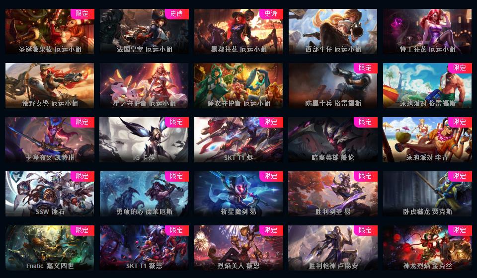 700皮+15神话至臻薇恩亚索卢锡安卡莎摄魂薇恩IG签名全套FPX签名全套KDA全套签名皮肤+新皮超多