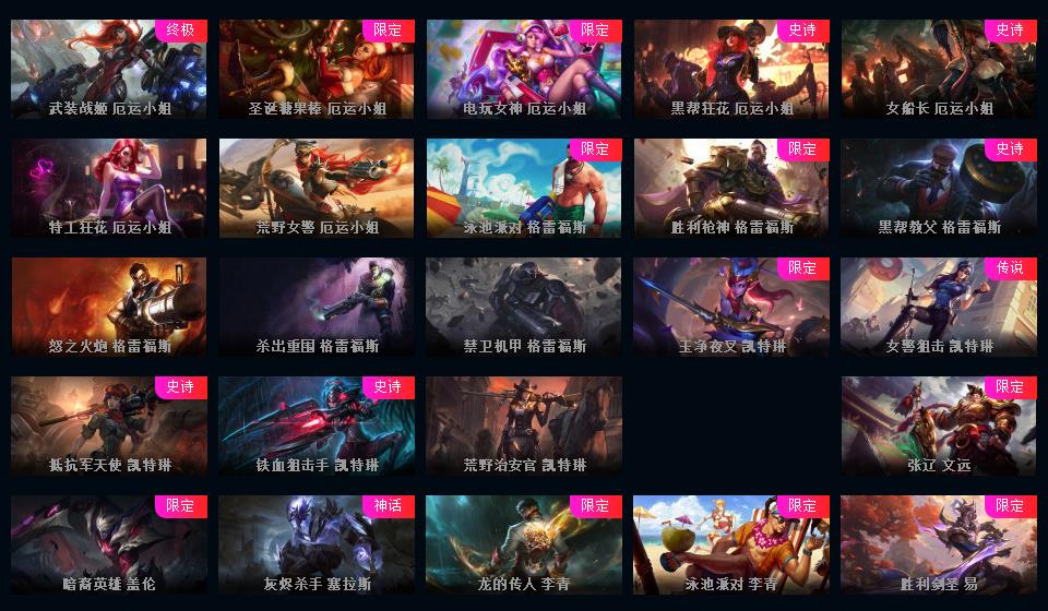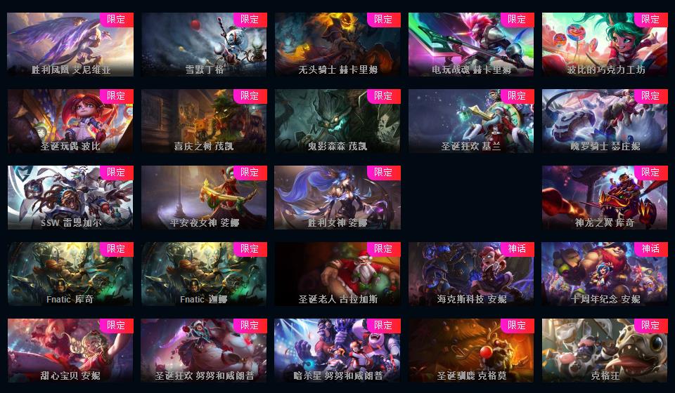 艾欧尼亚/黄金/全英雄/1122皮肤/终极2/神话27/限定121/臻彩17/炫彩321/