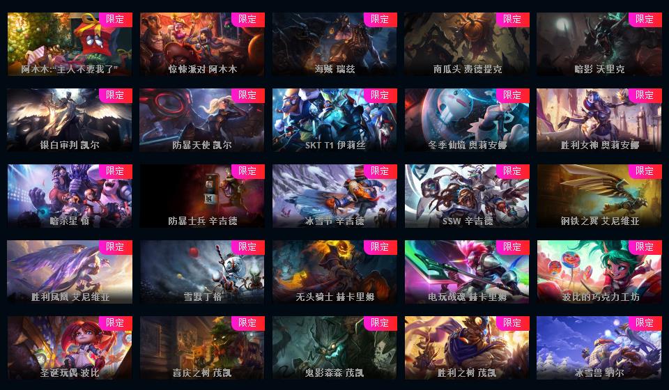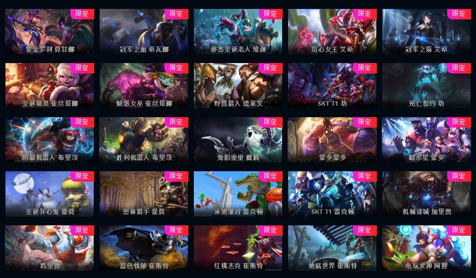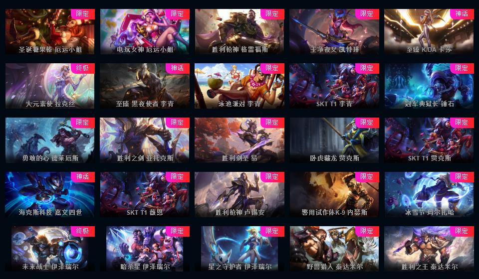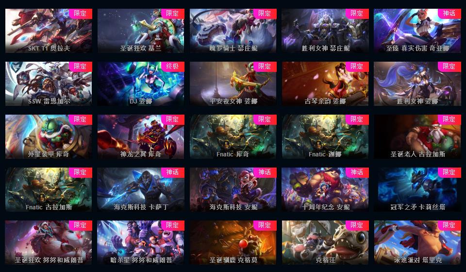 至臻卡莎、至臻奇亚娜、至臻女警、海克斯诺手、海克斯鳄鱼、钢铁拉克丝、克格汪、羊年金克丝、花木兰等优质皮肤