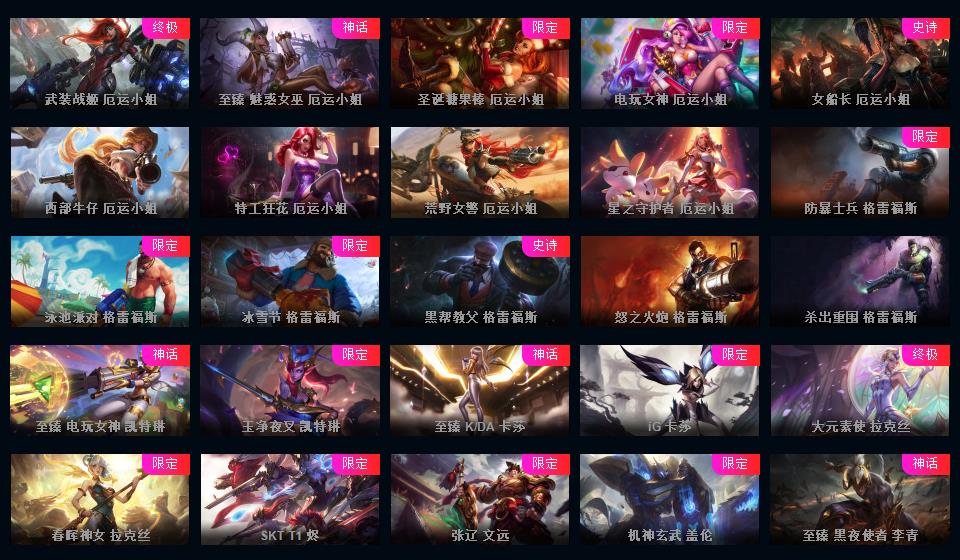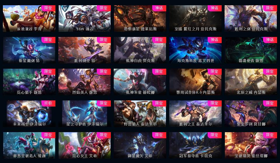 1000皮/满英雄/白银段可排位/龙瞎+龙琴+龙刀+龙猴/摄魂薇恩/至臻琪亚娜/至臻瑞文/3终极皮/泳池派对全套/100+限定/60传说/每个英雄都有一款以上好