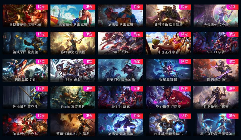 1451p-艾欧尼亚-27神话-204限定-86传说-龙瞎-海克斯薇恩-恐惧诺手-泳池派对全套-情人节套-冰雪节套-源计划套-冠军皮肤套-超多年限具体游戏见吧