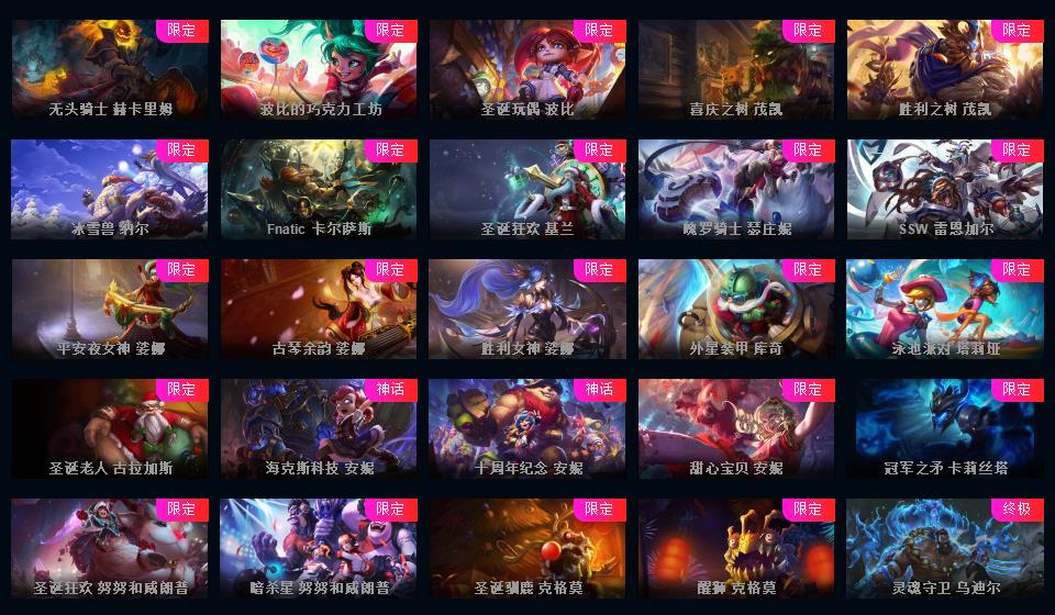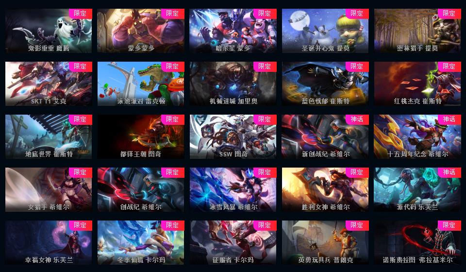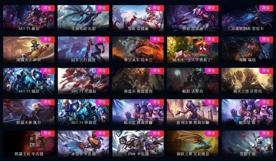 965原皮 625炫彩 31神话 14臻彩 黄色龙虾 噬魂VN 云顶神话崔丝塔娜 鼠年年套 斩星魔剑 玉剑 源计划 万圣节 冠军限定 泳池 电玩
